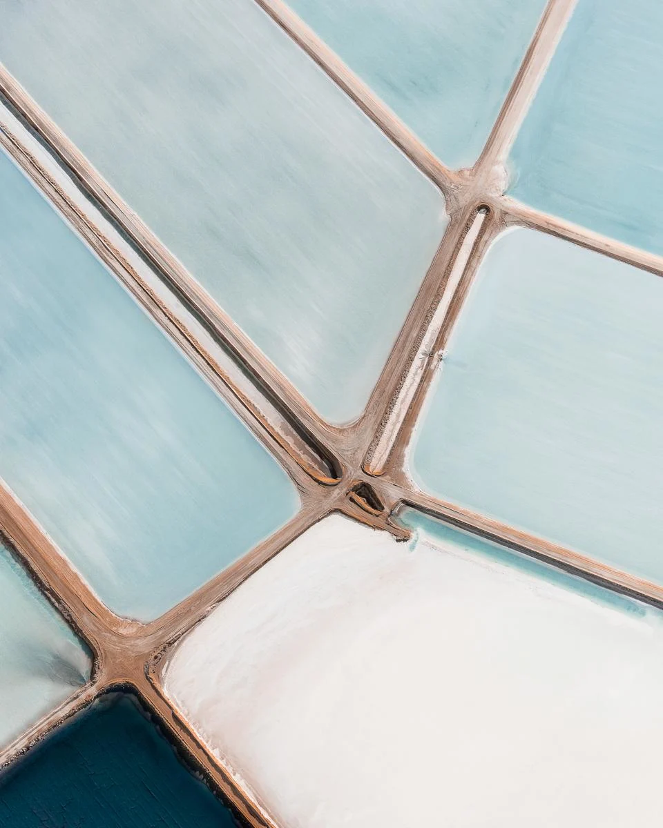 © Tom Hegen. In der Luftbildaufnahme wird diese Fischzucht zur ästhetischen Abstraktion.