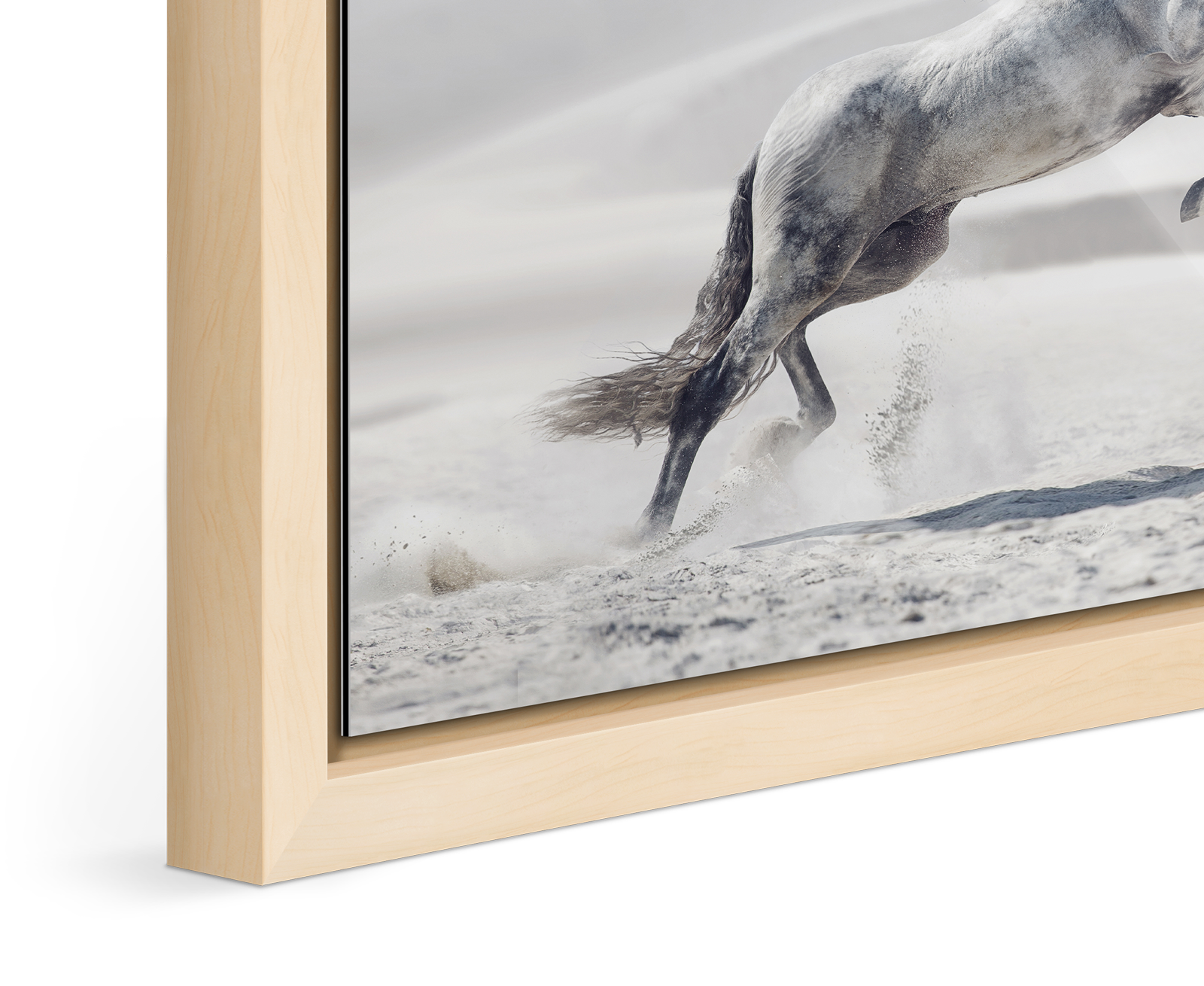 To frame and showcase your most beautiful designs, WhiteWall offers a hardwood floater frame, custom-made in small or large format in the carpentry workshop. The floater frame creates an elegant border for the design with a 7 mm gap (or 25 mm with the Basel Plus frame), thus generating a unique floating effect.