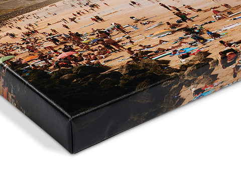 Der umgeschlagenen Motivrand eignet sich für Fotos mit großzügigem Bildrand. Durch den Umschlag des Fotos an den Seiten sind - entsprechend der Stärke des Trägerrahmens - 3 bis 5 cm des Motivs in der Frontalansicht nicht mehr zu sehen.
